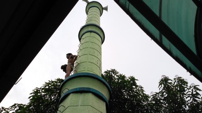 TRIBUNNEWS.COM, MAKASSAR - Seorang pemuda hendak melakukan lompatan dari menara masjid Rumah Sakit Ibnu Sina, Kota Makassar, Sulawesi Selatan, Jumat (18/3/2016), 16.30 Wita.