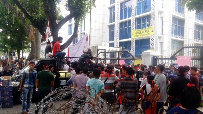 TRIBUNNEWS.COM, MEDAN - Setelah sebelumnya mengepung kantor Wali Kota Medan di Jl Kapten Maulana Lubis, kini ratusan pedagang Sutomo mengepung kantor DPRD Sumatera Utara di Jl Imam Bonjol.