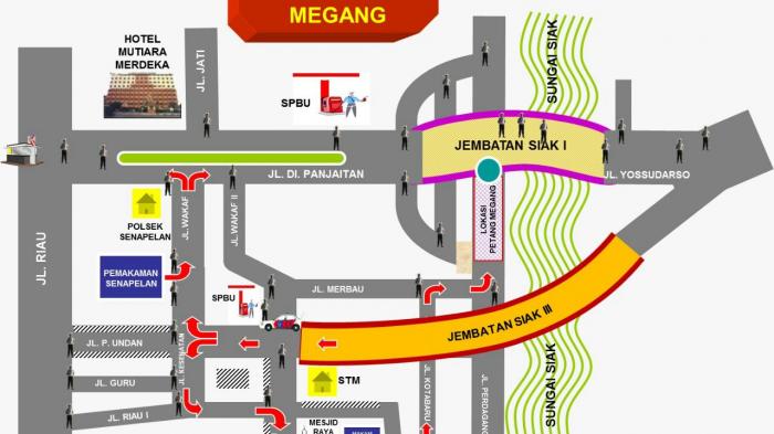 Nanti Sore Ada Petang Megang, Ini Rute Pengalihan Arus di Kawasan Jembatan Siak
