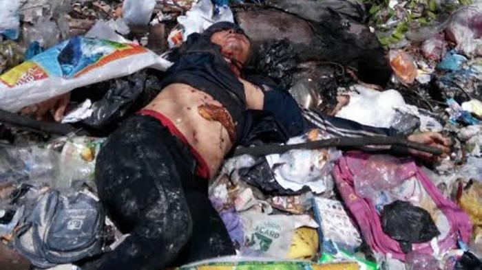 Jasad berjenis kelamin laki-laki berlumuran darah ditemukan di pembuangan sampah di Jalan Air Hitam, Simpang Gardu PLN, Payung Sekaki, Pekanbaru, Kamis (20/10/2016) pagi.