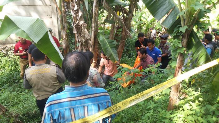Samsudin lalu melapor ke warga lainnya bahwa melihat kaki orang di kebunnya di belakang City Spa dan warga menghubungi aparat kepolisian