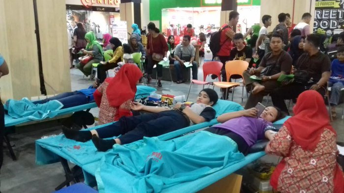 Suasana aksi donor darah ini terlihat ramai, banyak pengunjung mall yang mendaftar dan antri untuk mendonorkan darahnya.