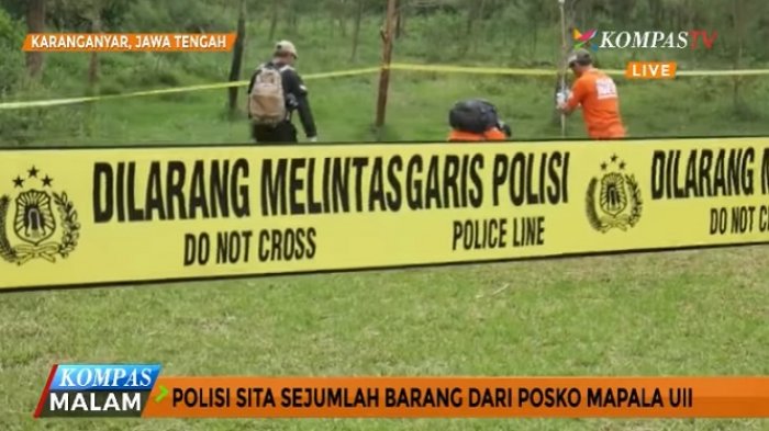 TRIBUNNEWS.COM, KARANGANYAR - Penyidik Satuan Reskrim Polres Karanganyar melakukan penggeledahan dan penyitaan barang bukti dari posko mahasiswa pecinta alam Universitas Islam Indonesia di Yogyakarta.