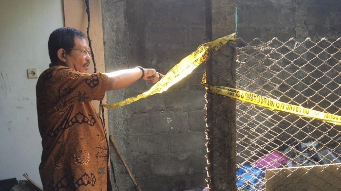 TRIBUNNEWS.COM, SLEMAN - Bau menyengat dari barang terbakar masih tercium di depan rumah Putut Wiryawan (58), Senin (6/2/2017) pagi.