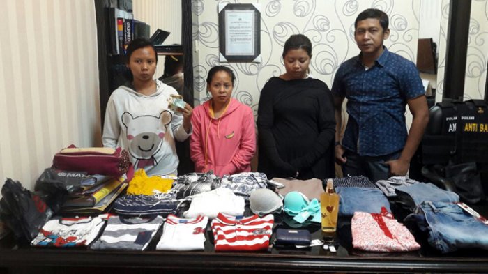 TRIBUNNEWS.COM, SURABAYA - Seorang ibu dan dua anak menantu diringkus tim Anti Bandit Polsek Tegalsari Surabaya lantaran mencuri aneka pakaian di Matahari Dept Store Tunjungan Plasa (TP).