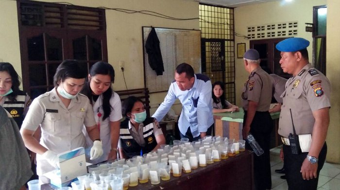 TRIBUNNEWS.COM, MEDAN - Sebanyak 106 personel Polsekta Sunggal menjalani pemeriksaan urine dadakan di markasnya, Selasa (15/8/2017). Dalam pengecekan urine ini, seorang polisi kedapatan urinenya positif.