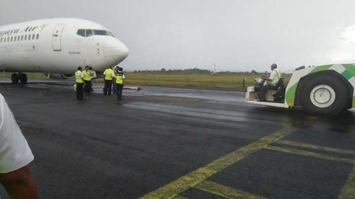 "Memang benar taxiway WP runway 03 menurun lebih kurang 7 cm, kejadian tersebut sempat menunda penerbangan SJ593 lebih kurang 1 jam dan lanjut terbang," kata Turah.
