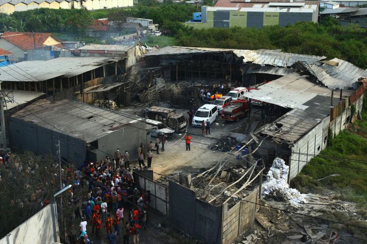 TRIBUNNEWS.COM - Gudang sekaligus pabrik petasan milik PT Panca Buana Cahaya Sukses di Kosambi, Tangerang, mengalami kebakaran, Kamis (26/10/2017).
