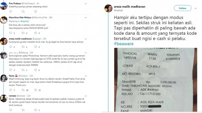 Bahkan akun Twitter resmi bank Mandiri beberapa kali menjawab keluhan beberapa warganet atas maraknya kasus penipuan dengan rekening Mandiri.