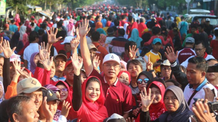 Puti yang ditemani oleh Bupati Ngawi, Budi ‘Kanang’ Sulistyono, disambut ribuan peserta jalan sehat yang membanjiri Alun-Alun Ngawi, Minggu (4/2/2018). “Kegiatan ini wujud kebahagiaan dan kebanggaan kami, karena Mbak Puti hadir di Ngawi,” kata Bupati Kanang.