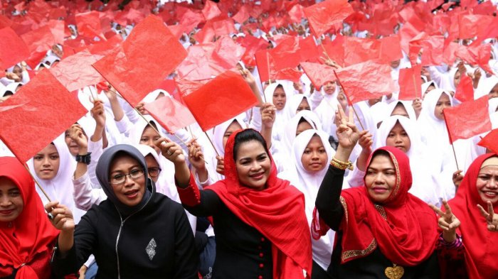 TRIBUNNEWS.COM, PROBOLINGGO - Sambutan gegap-gempita diberikan santri dan santriwati Pondok Pesantren Zainul Hasan Genggong terhadap Calon Wakil Gubernur Puti Guntur Soekarno yang bersafari di Kabupaten Probolinggo.