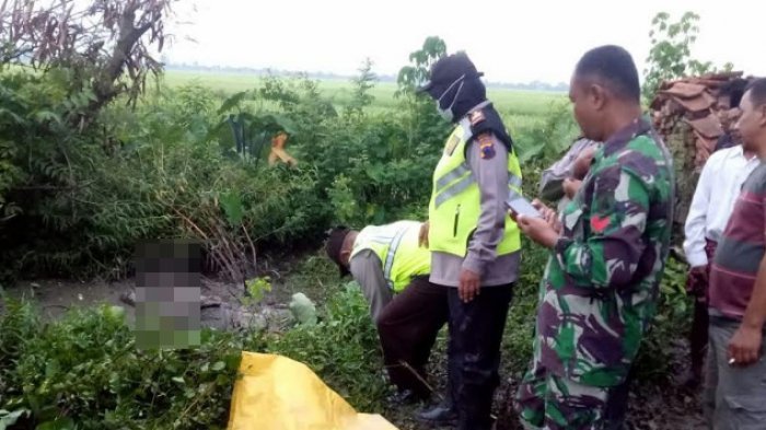 Sesosok mayat tanpa identitas ditemukan di Desa Cipelem, Kecamatan Bulakamba, Brebes di saluran air areal persawahan tanpa mengenakan celana.