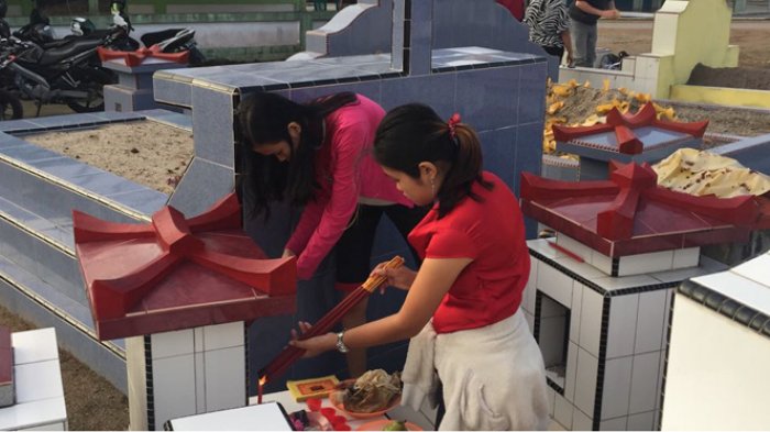 Momen sembahyang kubur merupakan ritual dimana merupakan momen saat memberikan penghormatan kepada leluhur dan berdoa.