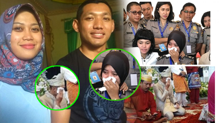Sang mempelai wanita tidak berada di sampingnya karena sedang mengikuti seleksi menjadi polisi PBB di Cikeas, Jawa Barat.