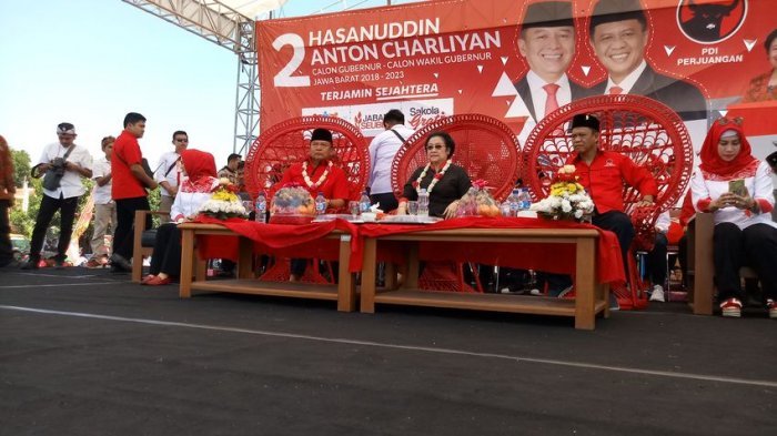Megawati hadir di Cirebon untuk menghadiri kampanye akbar calon gubernur dan calon wakil gubernur Jabar nomor urut 2, Tb Hasanuddin-Anton Charliyan (Hasanah).