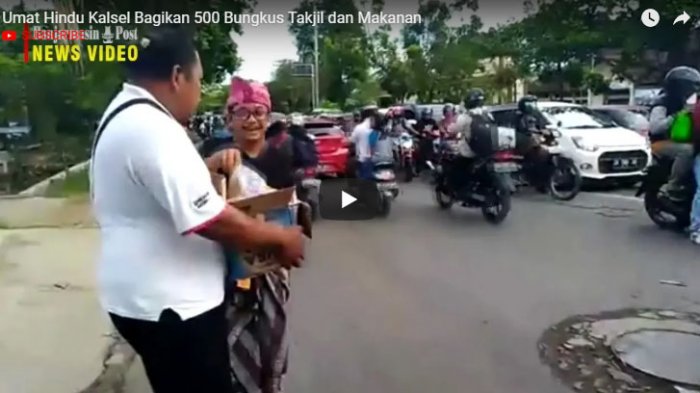 Umat Hindu Kalimantan Selatan, membagi-bagikan nasi dan takjil sebanyak 500 bungkus di jalan Gatot Subroto no 36 Banjarmasin tepatnya di depan sekitar