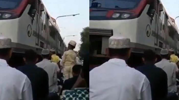 Video Kereta Api Melintas di Tengah Pelaksanaan Salat Idul Adha, Jamaah Tetap Tenang dan Khusyuk