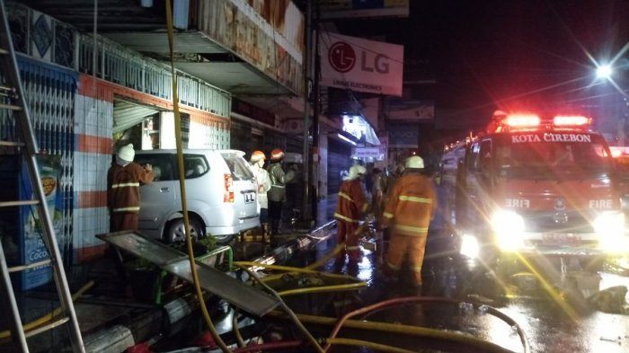 Api melalap dua toko di Jalan Pasuketan, Kota Cirebon, Minggu (26/8/2018) malam. Diduga api berasal dari korsleting listrik di bagian atap toko.