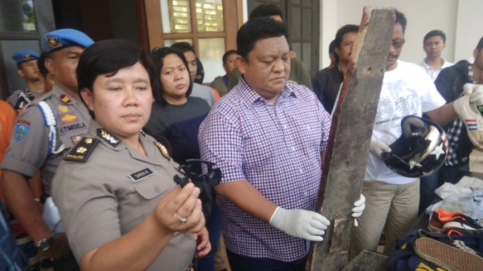 Pantauan Tribun, barang bukti tersebut merupakan alat yang digunakan untuk menganiaya korban. Seperti papan balok setinggi dua meter, sepatu, pecahan piring, balok kayu, pakaian yang dipakai pelaku saat menganiaya.