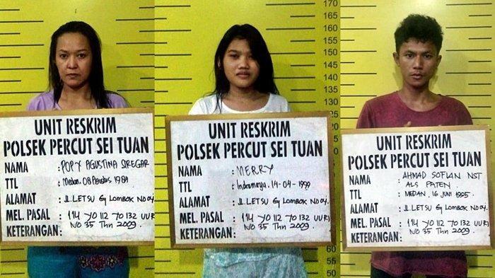 Ketiga pelaku, yakni Ahmad Sofyan Nasution (25), warga Jalan Pimpinan Dusun II, Desa Bintang Meriah, Kecamatan Batangkuis, Kabupaten Deliserdang; Poppy Agustina Siregar (34), warga Jalan Bandarsetia Gang Mandor, Dusun IV, Desa Bandarsetia, Kecamatan Percut Sei Tuan, Kabupaten Deliserdang; dan Merry (19), warga Jalan Karya VII, Kelurahan Karang Berombak, Kecamatan Medan Barat, Kota Medan. Merry, berasal dari Kabupaten Indramayu, Provinsi Jawa Barat.