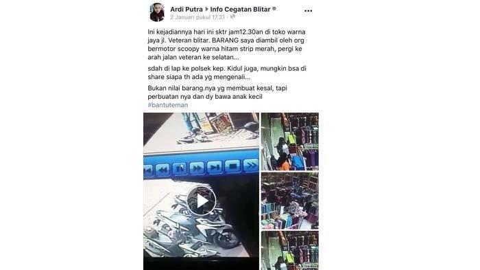 Viral video rekaman CCTV yang merekam aksi pencurian seorang wanita sambil membawa anak di Kota Blitar.