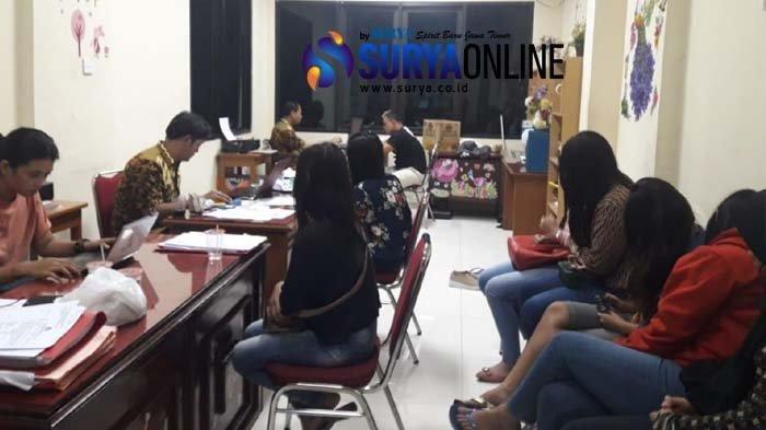 pelaku prositusi berkedok panti pijat di Kediri menjalani pemeriksaan di ruangan Renakta Ditreskrimum Polda Jatim, Sabtu (19/1/2019)