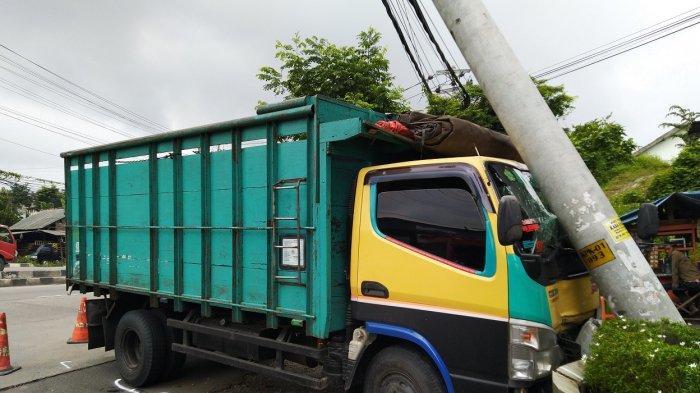 TRIBUNNEWS.COM, SEMARANG - Sebuah truk berplat nomer E9017PB mengalami kecelakaan menebrak sebuah tiang listrik bertegangan tinggi di Jalan Walisongo arah Kota Semarang, Rabu (6/3/2019) pagi.