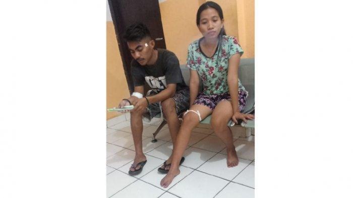 Kedua korban saat berada di Mapolres Kupang Kota, Minggu (11/08/2019). Pemuda di Kupang Hajar Pacar karena Bersama Pria Lain di Kos: Sempat Kejar-kejaran dan Kunci Kamar.