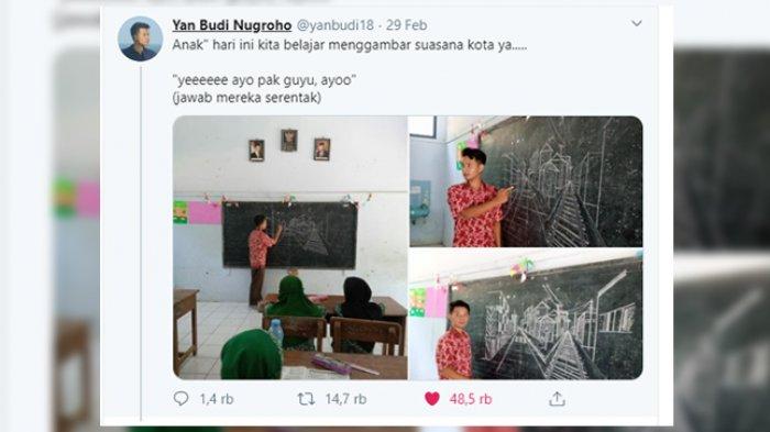 TRIBUNNEWS.COM- Gambar seorang guru mendadak viral di media sosial Twitter.