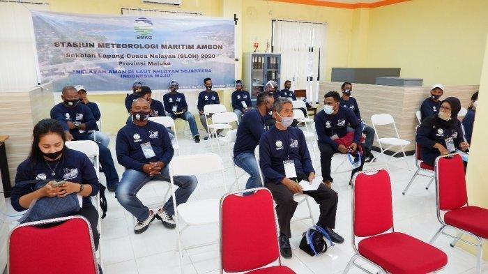 TRIBUNNEWS.COM, AMBON - Stasiun Maritim, Badan Meteorologi, Klimatologi dan Geofisika (BMKG) Ambon menggelar Sekolah Lapang Nelayan (SLN) yang diikuti puluhan nelayan termasuk penyuluh perikanan.