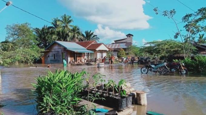 Diketahui banjir masih menggenangi beberapa desa di Kecamatan Sembakung.