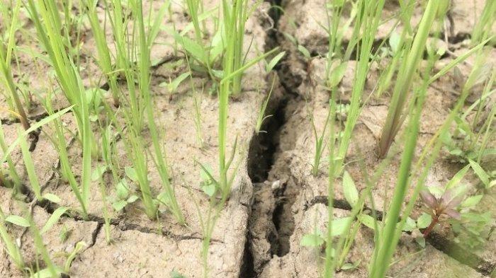 Dari pantauan tribun-timur.com, Kamis (10/2/2022), tanah persawahan kini sudah retak.