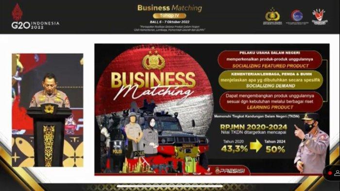 Business matching ini dikatakan Listyo Sigit Prabowo sebagai wadah untuk menjembatani antara pelaku usaha dalam negeri dengan kementerian dan Lembaga serta pemerintah daerah dan BUMN.
