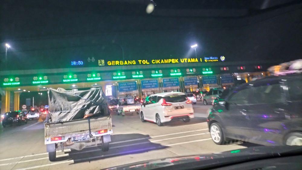 Jelang Malam, Arus Lalu Lintas di Gerbang Tol Cikampek Utama Masih Ramai Lancar