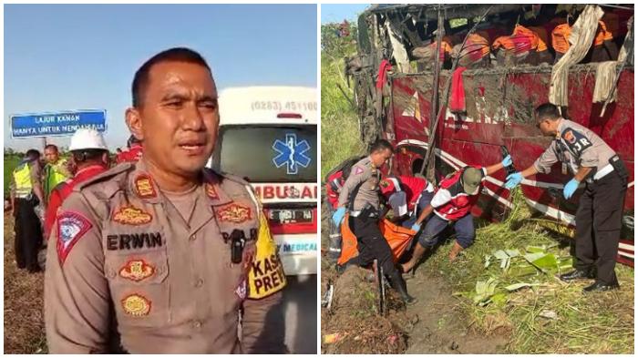 Kasatlantas Polres Tegal, AKP Erwin Chan Siregar, membenarkan kecelakaan maut Bus Agra Mas.