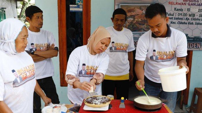 TRIBUNNEWS.COM, JAKARTA - Sukarelawan Ganjar Pranowo yang tergabung dalam Ganjar Sejati menggelar kegiatan pelatihan membuat martabak, bagi warga di Kampung Babakan, Kelurahan Cicurug, Kecamatan Cicurug, Kabupaten Sukabumi, Jawa Barat.