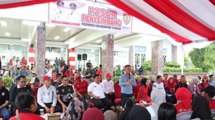TRIBUNNEWS.COM - Dalam rangka Natal 2023 dan Tahun Baru 2024 (Nataru), Pemerintah Provinsi (Pemprov) Kalimantan Tengah (Kalteng) menggelar Pasar Penyeimbang yang bertempat di Halaman Istana Isen Mulang Rumah Jabatan Gubernur Kalteng, Minggu (17/12/2023).