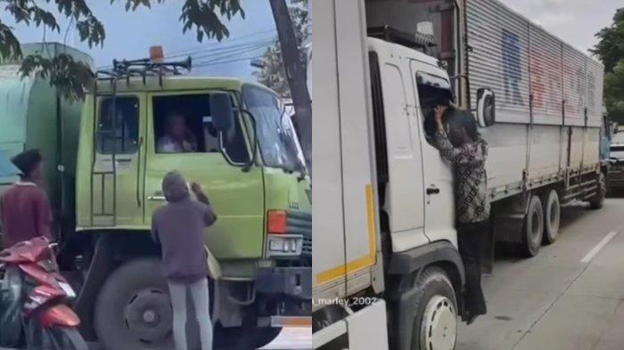 Dalam video yang diunggah di akun Instagram @palembang.update, Senin (25/11/2023), pemuda tersebut terlihat bergelantung di pintu truk bagian kanan untuk meminta uang kepada sang sopir.