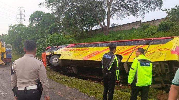 "Berdasarkan pengakuan saksi, ada mobil boks yang melakukan pengereman. Saat itu, bus yang sedang melintas di bahu jalan hilang kendali dan keluar dari jalur hingga terguling," ucap Joko dikutip dari TribunJabar, Jumat (16/2/2024).