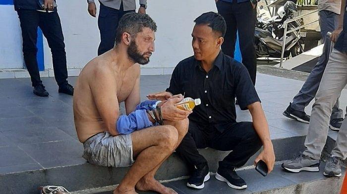 Dari dalam mobil lantas keluar WNA dengan ciri-ciri kulit putih, rambut hitam ikal, mengenakan kemeja biru, celana pendek dan ransel hitam.