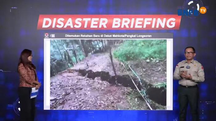 Kepala Pusat Data, Informasi dan Komunikasi Kebencanaan BNPB Abdul Muhari atau yang akrab disapa Aam menjelaskan rekahan tanah baru yang melintang dan menganga itu berjarak sekitar 50 meter sampai 200 meter di atas singkapan mahkota longsor