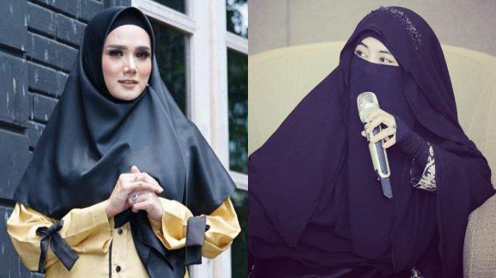 Umi Pipik yang kini bercadar tampak diapit oleh kedua penyanyi sekaligus sahabatnya tersebut.
