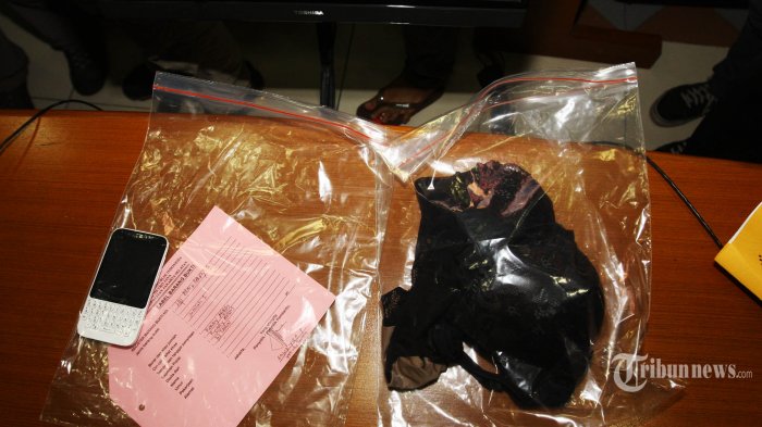 Wahyu menjelaskan barang bukti yang diamankan dari sebuah hotel bintang 5 di Jakarta Selatan berupa handphone blackberry Z10 warna putih serta bra dan celana dalam warna hitam.