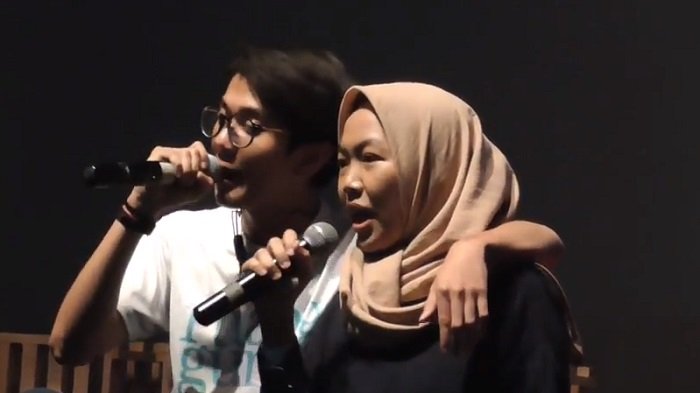 Di penghujung lagu, eks personel Coboy Junior (CJR), mengajak seorang perempuan berjilbab bernyanyi bersamanya di atas panggung.