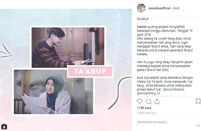 Dito mengajak Anisa bekerjasama dalam musik religinya yang diunggah ke Youtube. Ia juga mengajak Anisa berakting untuk sebuah film pendek tentang Singlelillah.