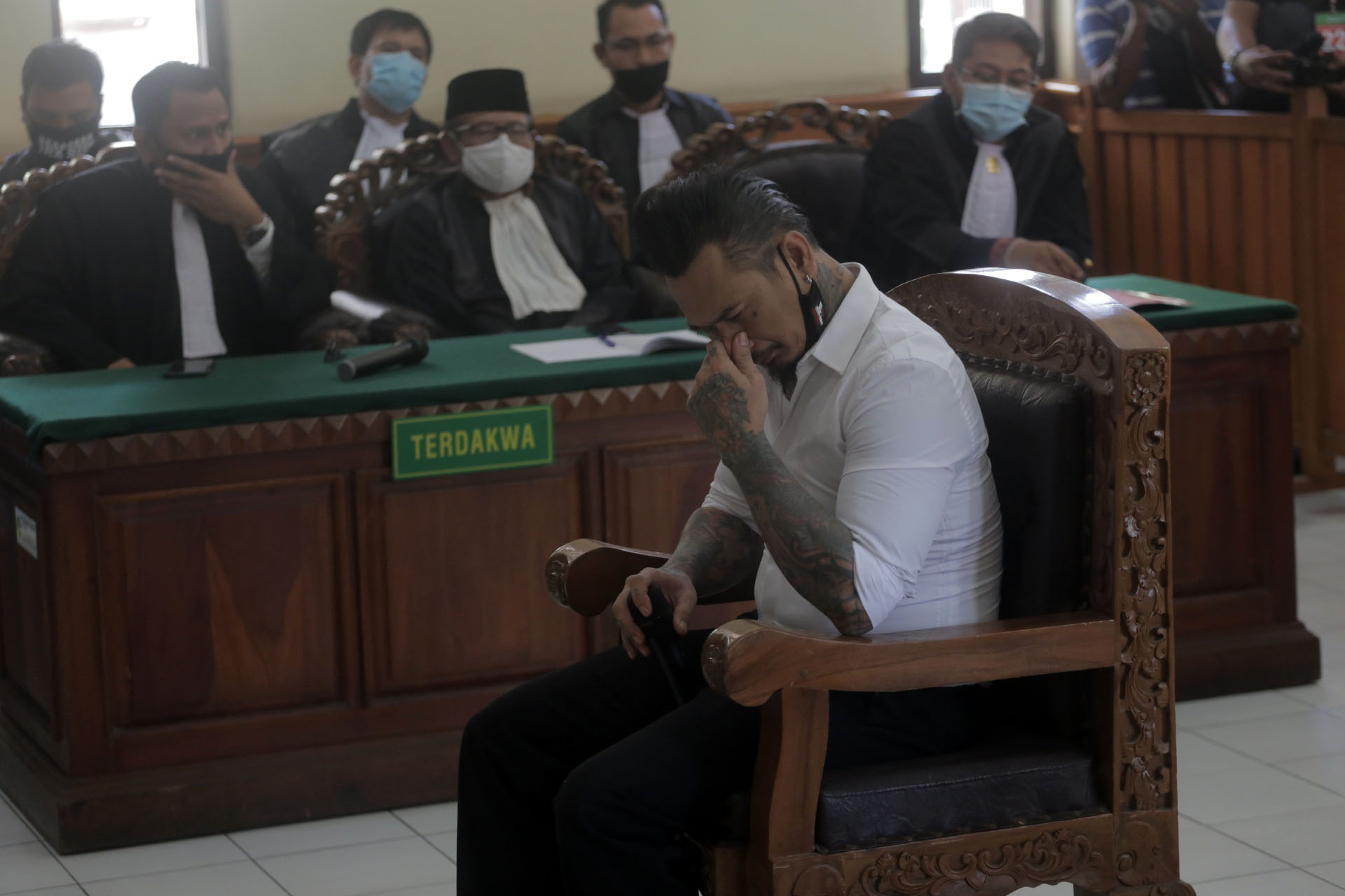 Tidak banyak komentar yang keluar dari bibir I Gede Ary Astina alias Jerinx (JRX) saat tiba di Pengadilan Negeri (PN) Denpasar, Bali, Kamis (19/11/202