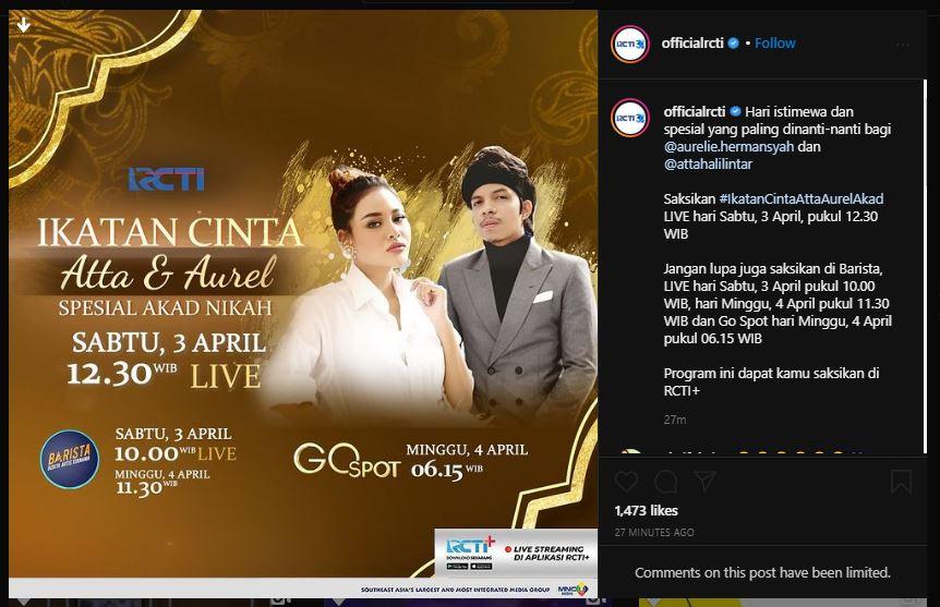 Tak hanya prosesi akad nikah, berbagai persiapan pernikahan Atta dan Aurel juga bisa disaksikan di RCTI mulai pukul 10.00 WIB.