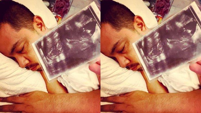 Dalam unggahannya, Annisa memamerkan foto hasil USG dengan latar belakang sang suami yang sedang tertidur.