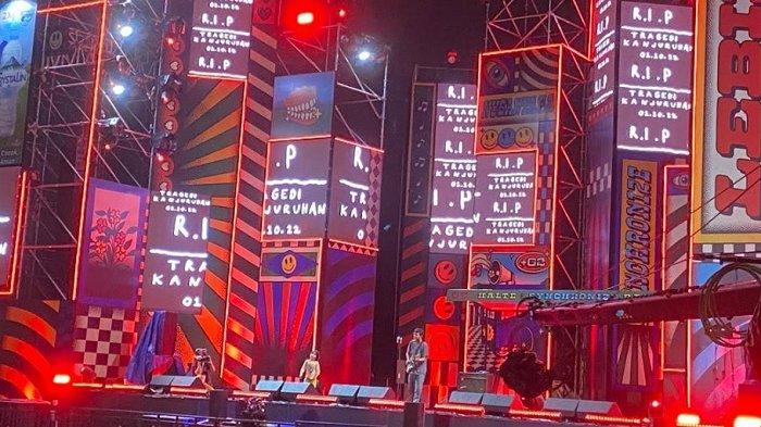 "Kemarin di Malang ada sesutu yang terjadi ya, kita berdoa untuk Malang ya, ada yang dari Malang?" kata Jason Ranti di atas panggung, Jumat (7/10/2022).