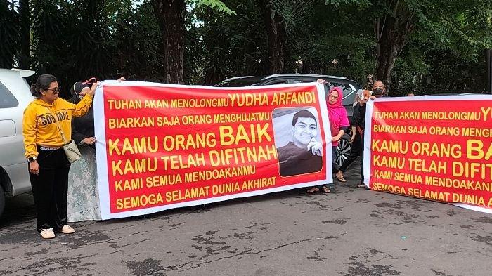 Pendukung Yudha Arfandi Bentangkan Spanduk Saat Rekonstruksi Kasus Dante, Yakin Eks Tamara Difitnah